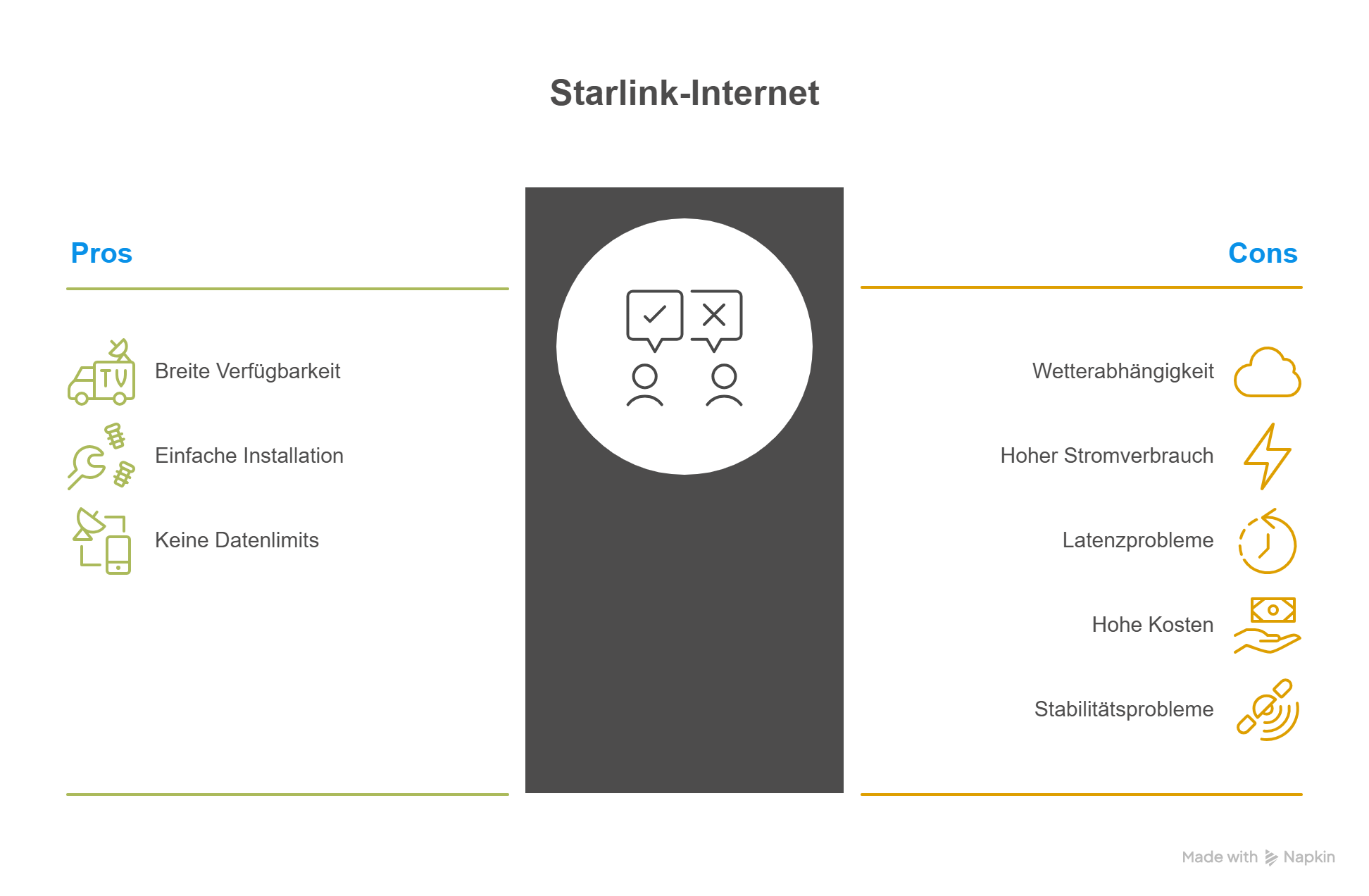 Typische Stolpersteine sind Hindernisse und Wetter. Bäume, Hauskanten oder dichter Niederschlag können die Verbindung stören. Dazu kommt: Satelliten-Internet ist oft stromhungriger als ein klassischer Festnetzanschluss.